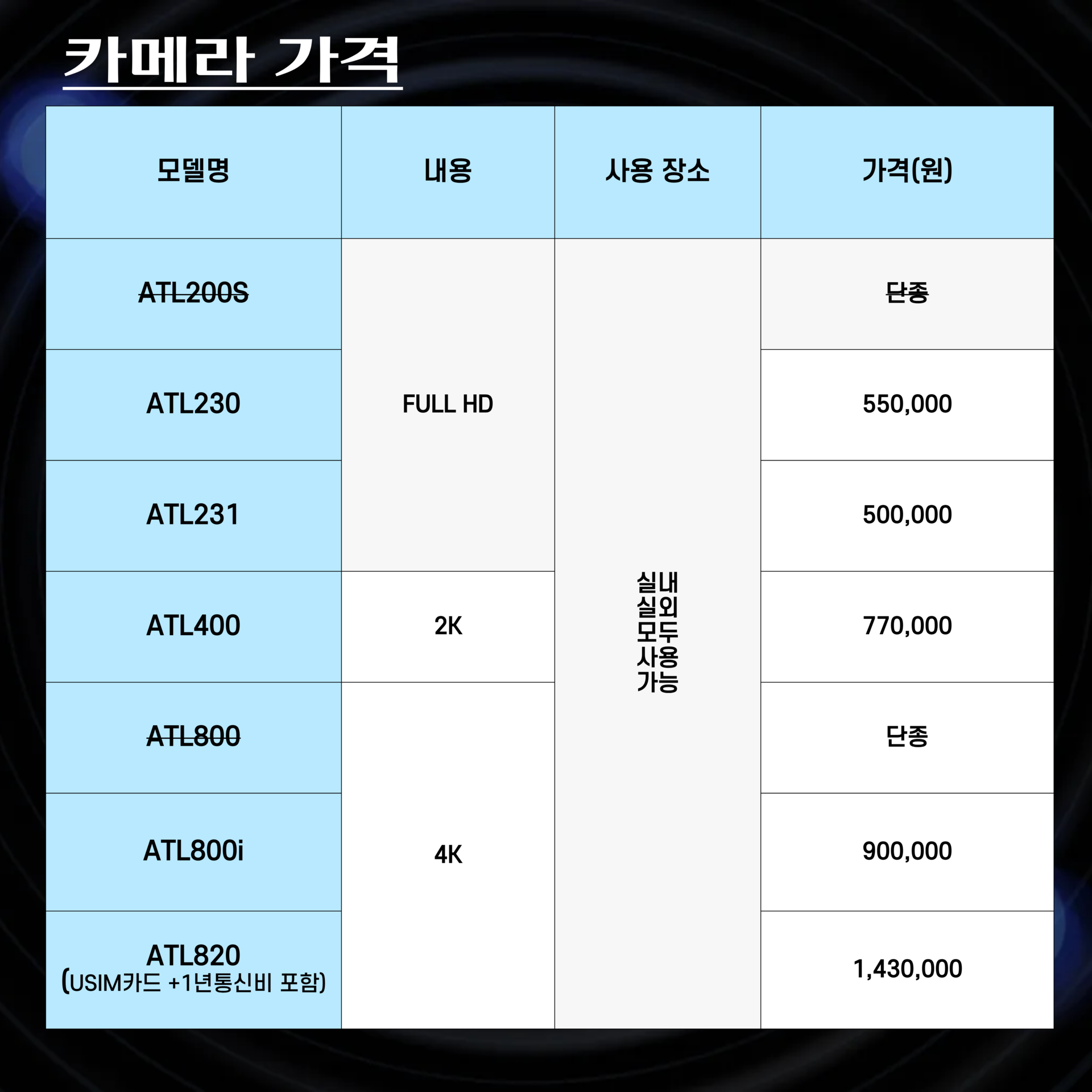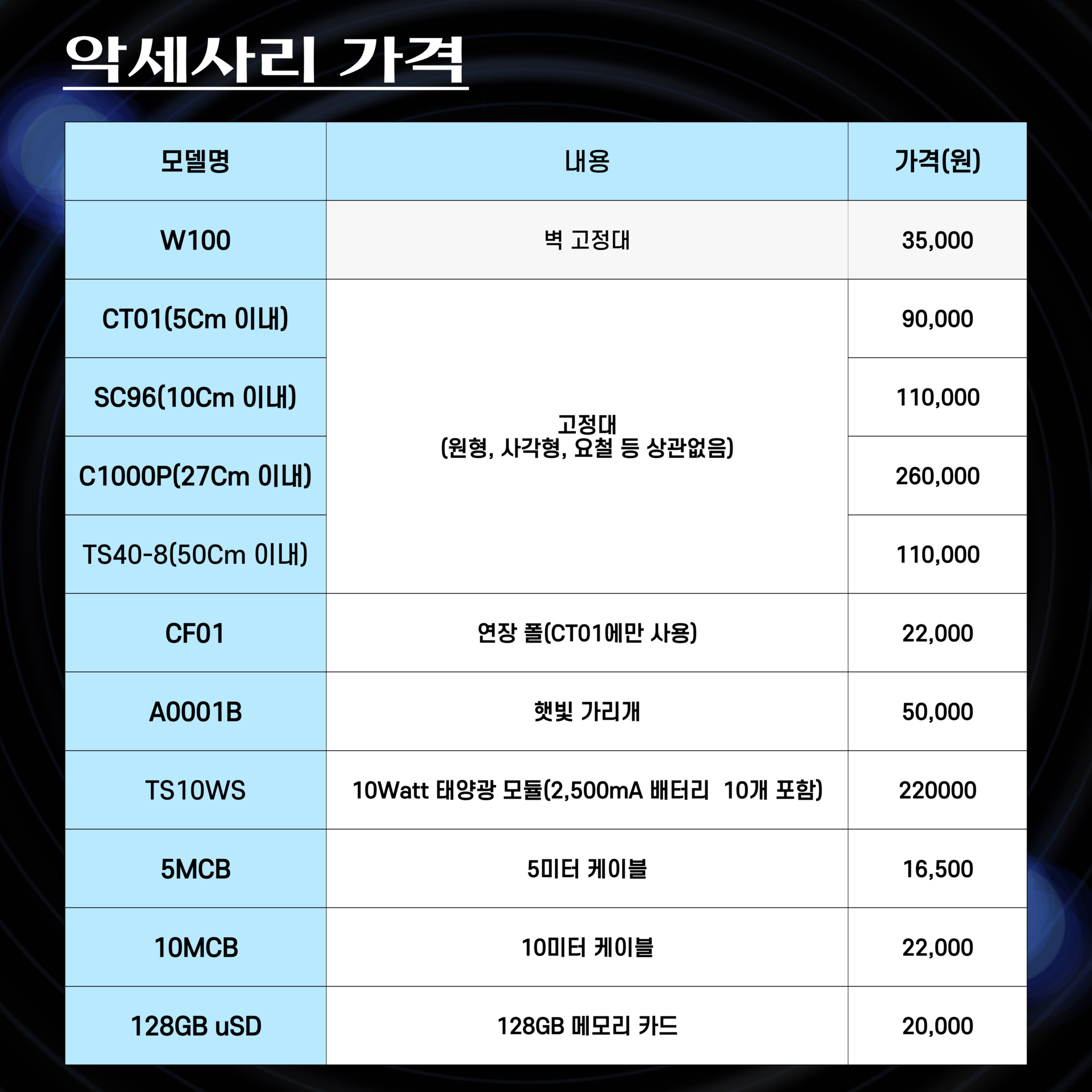 하기 가격표는 현금 가 이며 부가세 포함 가격입니다.